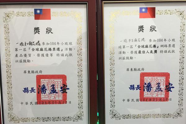 更獲得2015年小琉球全球麻花捲網路票選第一名